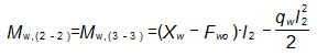 Mw2-2= Mw3-3=12,1·3,97+(2,4·3,972/2)=67 кН·м
