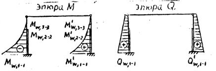 Эпюры усилий в раме от ветровой нагрузки (ветер слева)