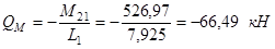 Q12 = 403,78 + ( - 66,49) = 337,29 кН, Q21 = 403,78 - ( - 66,49) = 470,27 кН.