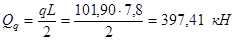 Qq - поперечная сила от действия равномерно распределённой нагрузки: