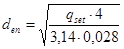 Диаметр впускного устройства den определяется по формуле