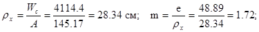 e = M1 / N1 = 495.66 / 1013.85 = 0.489 м = 48.9 см; m = e / ρx = 48.9 / 36 = 1.358;